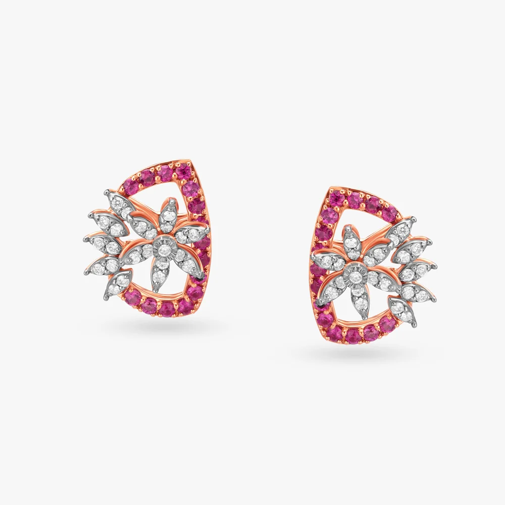 Pink stone floral stud earrings